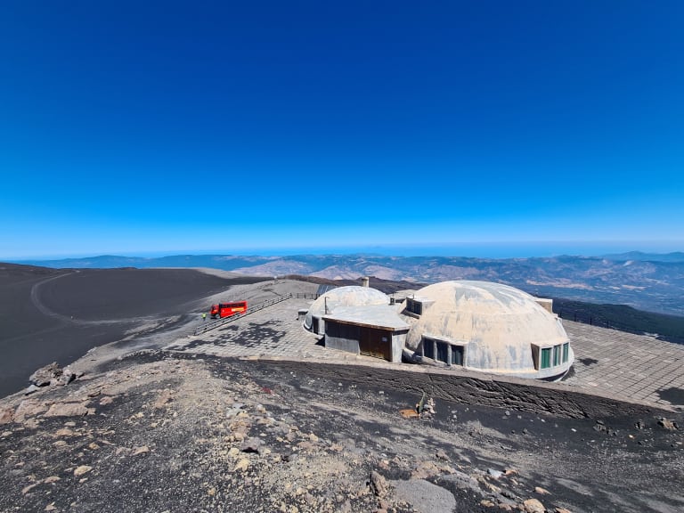 L’excursion commence à Piano Provenzana. Depuis ce point, des bus 4×4 vous emmènent jusqu’à environ 2860 mètres d’altitude, à proximité de l’observatoire volcanologique. Une courte marche vous conduit ensuite jusqu’à la zone de Pizzi Deneri, située autour de 2900 mètres, offrant un panorama exceptionnel sur la côte ionienne et sur les structures volcaniques du sommet.