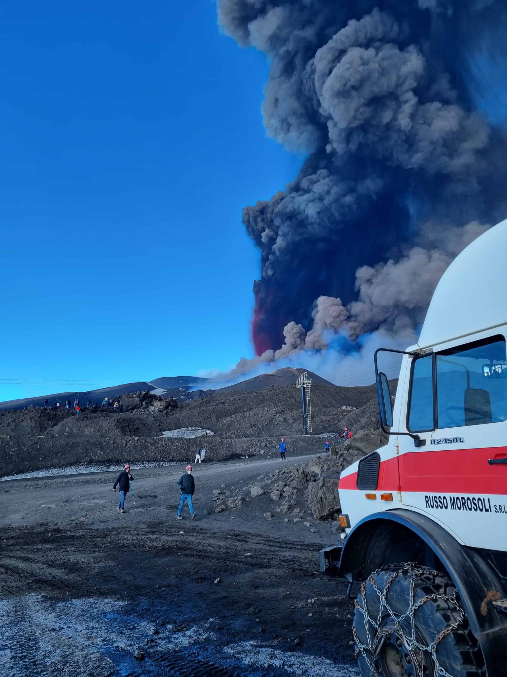 Au départ du Rifugio Sapienza, vous prenez le téléphérique jusqu’à 2500 mètres, avant de poursuivre en bus 4×4 à travers un environnement volcanique spectaculaire. Vous atteignez environ 2920 mètres d’altitude, près de la Torre del Filosofo, où vous partez pour une courte randonnée guidée avec un volcanologue.